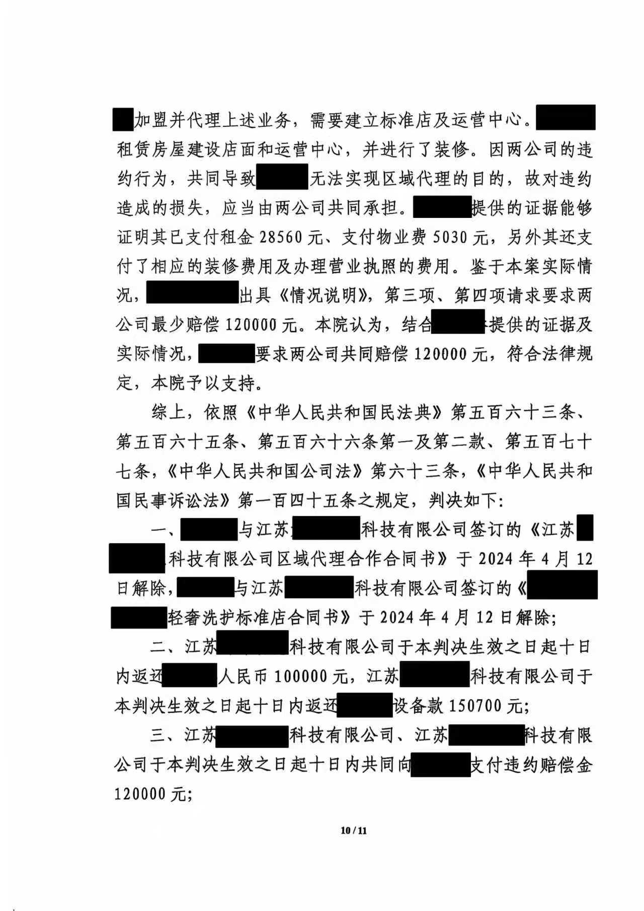 案情简介孙某在网上看到某洗护公司的广告,认为很有发展前景,遂与某洗护公司签订了代理合同,成为某洗护公司的在孙某老家的代理商,由某洗护公司全程指导孙某在当地开设店铺,孙某支付给某洗护公司了10万元品牌保证金,支付给其关联公司15万元的设备款,又花费了20多万元装修店铺,店铺装修快完工时,某洗护公司的负责人突然失联,孙某多方索赔未果,无奈委托本律师起诉至法院。