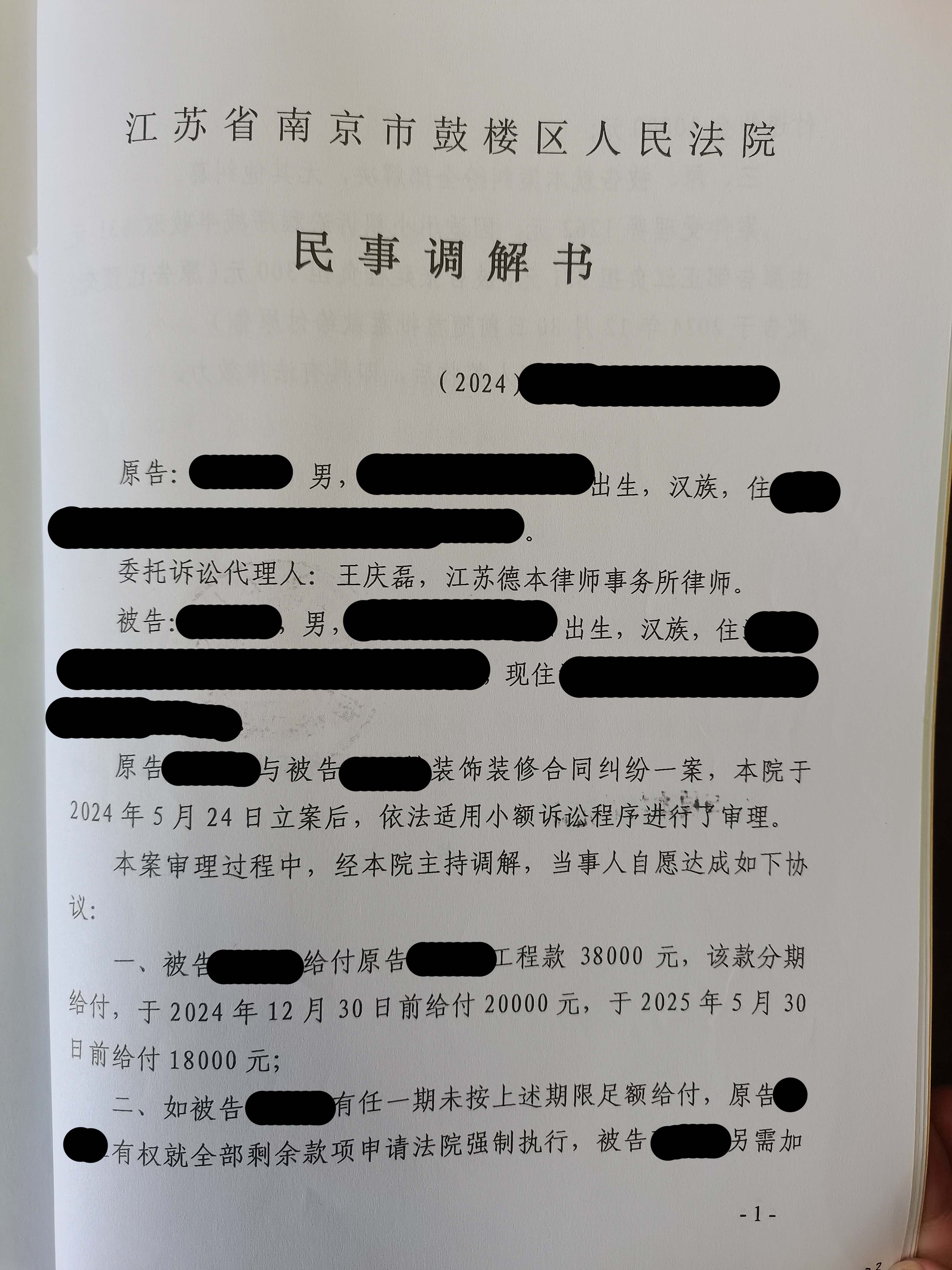 邹某与张某因工程款未结,诉至法院维权,本律师代理邹某与张某成功达成调解协议,帮邹某拿到工程款。(附图)