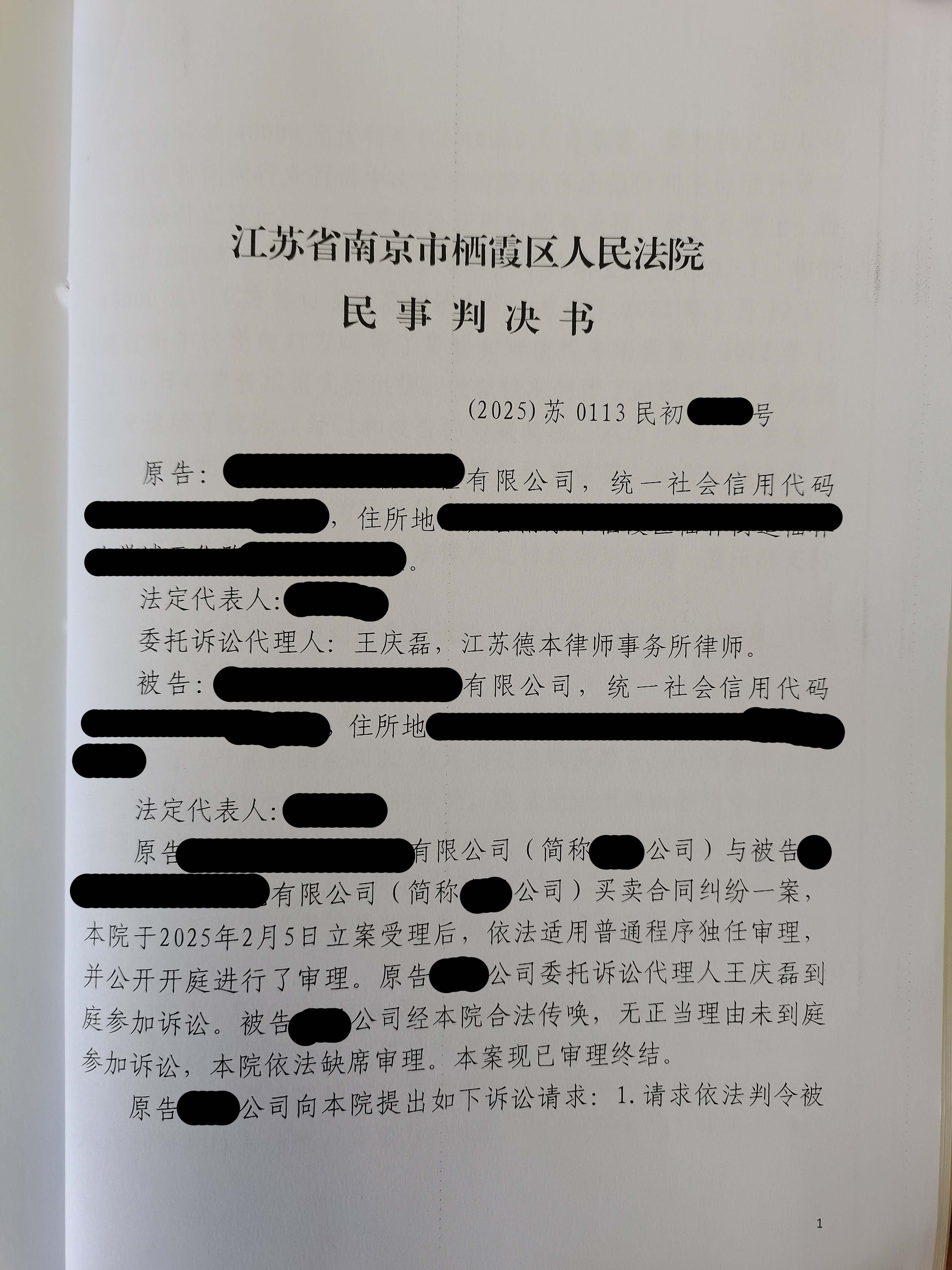 南京某公司诉成都某公司支付货款,本律师代理南京某公司成功拿回货款。(附图)