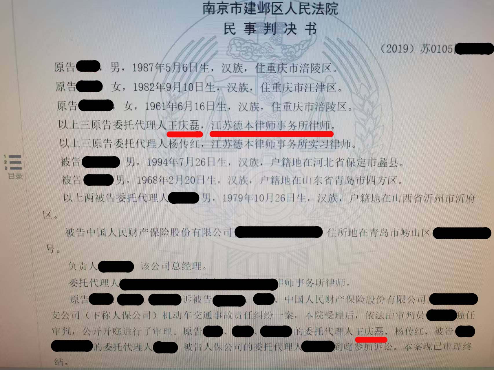 本律师代理后,仔细研究了案件,准备了起诉文件,申请赔偿丧葬费43295元、死亡赔偿金333520元、精神抚慰金50000元、交通费1000元、处理事故人员误工费5000元、被扶养人生活费110446.67元,合计543261.67元,按照同等责任比例计算为369957元。