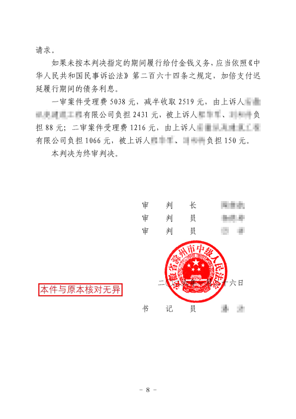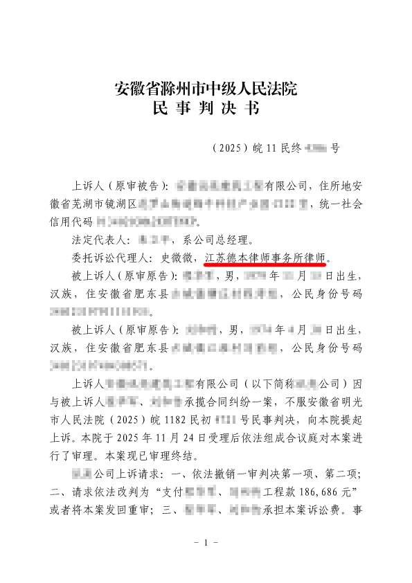 本案中,江苏德本律师事务所律师团队接受上诉人委托后,深入梳理案件事实、精准辨析法律关系,针对一审判决的争议点制定了极具针对性的上诉策略,庭审中专业举证、据理力争,充分履行了委托诉讼代理人的职责。史律师的专业抗辩成功推动法院扣除了代付的农民工工资,核减了工程款及保全费数额,切实为当事人减少了付款责任,维护了其合法权益。